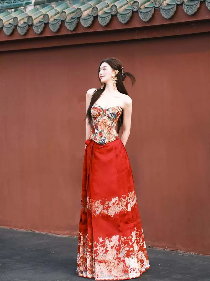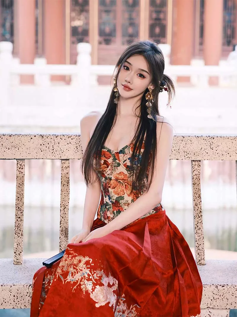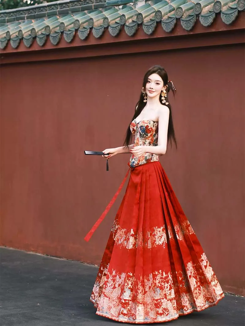 This Mamian Skirt is an original Hanfu half skirt designed with brocade jacquard fabric and double-warp weaving craftsmanship. Its luxurious texture and intricate detailing highlight the beauty of traditional Chinese attire, while the half skirt design ensures comfort and ease for daily wear. The use of traditional techniques brings depth to the fabric, creating a graceful drape that reflects both heritage and artistry.