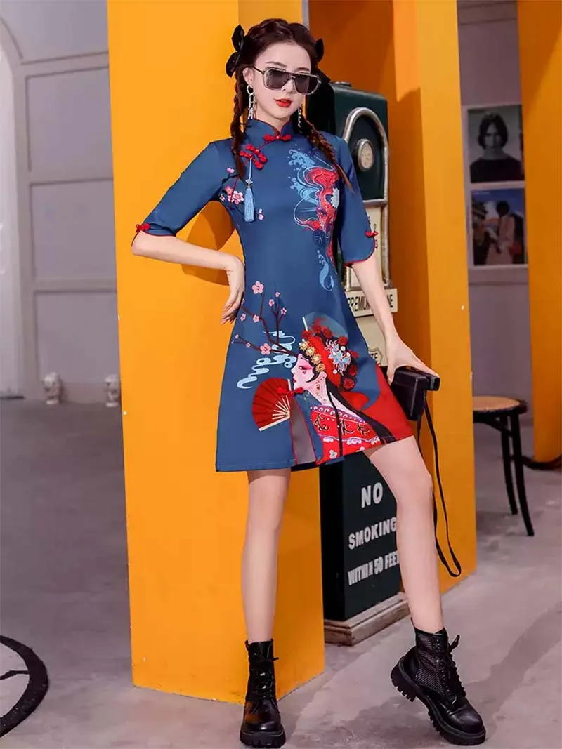 1 review for Stunning Modern Qipao Designs 2025 | Elegant Short Blue Chinese Dress