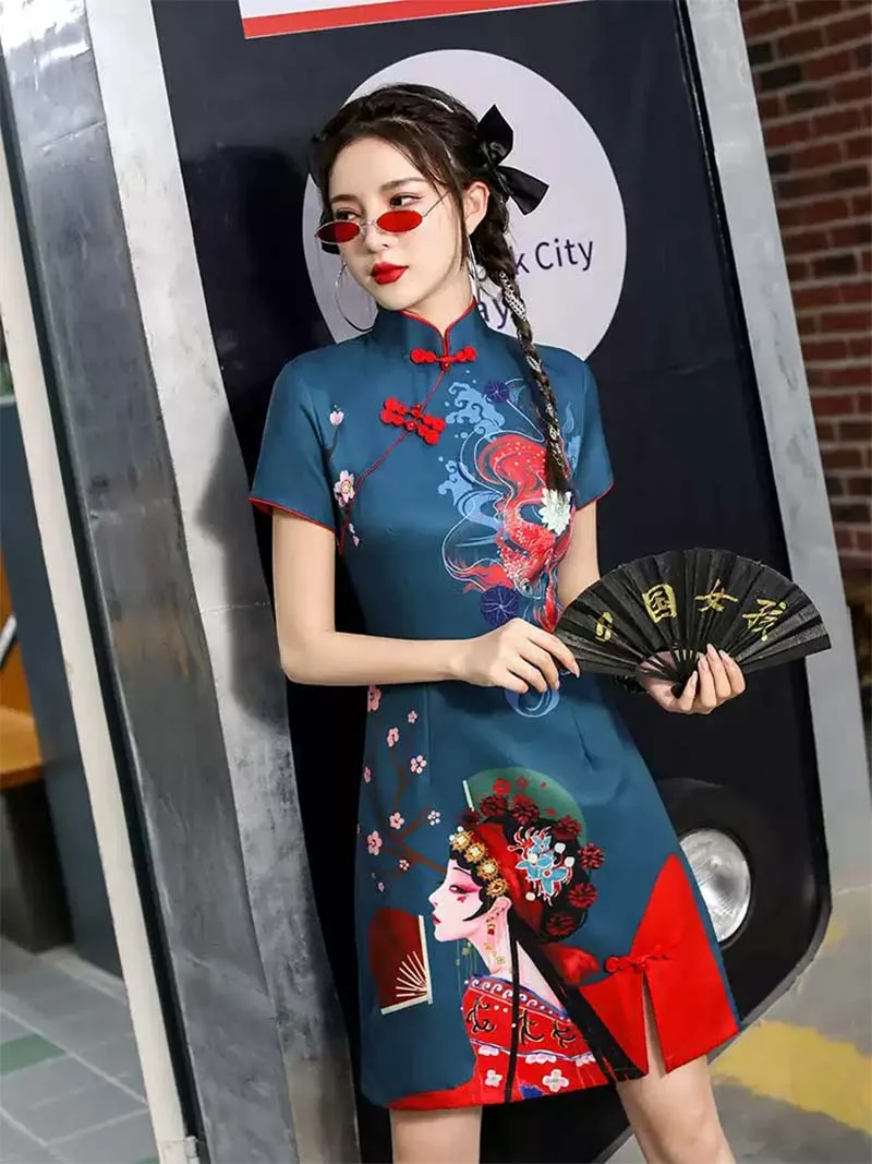 The Modern Qipao Designs 2025 is a contemporary twist on the classic Chinese cheongsam, created for young women who love elegance and modern style. Featuring a vibrant blue shade and a short, tailored cut, this qipao combines traditional Chinese elements with a fresh, youthful silhouette. Designed for petite figures, it offers a flattering fit, lightweight comfort, and breathable fabric ideal for summer occasions. Perfect for casual outings, summer parties, or cultural events, this dress captures the essence of modern Chinese fashion while maintaining timeless charm.